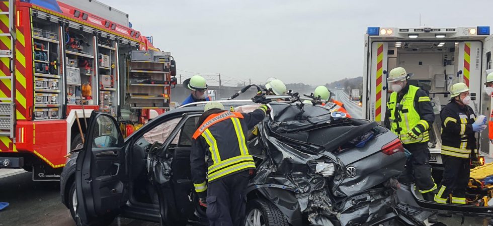 (Lübbecke, 14.2.2022) Das Auto war ein komplettes Wrack: Bei einem Verkehrsunfall in Nordrhein-Westfalen ist der Beifahrer schwer verletzt worden – anders als der Fahrer.