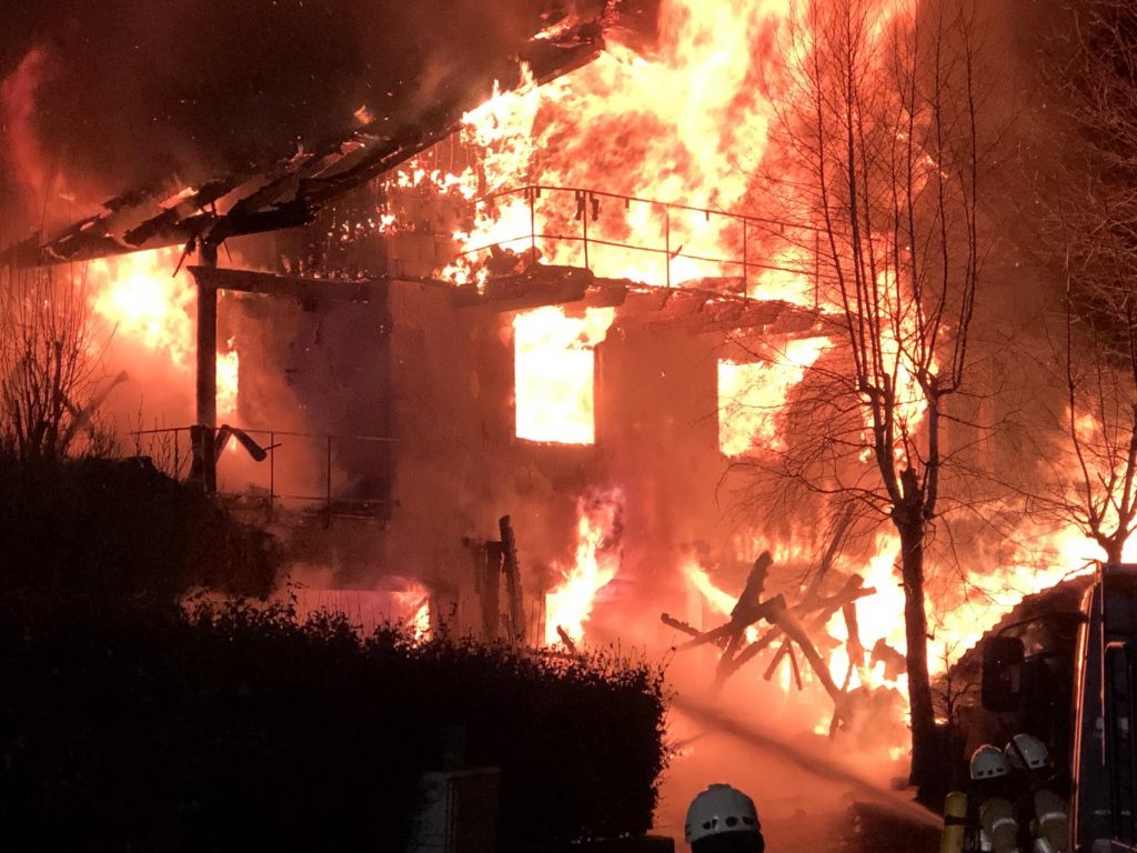 Als die Feuerwehr eintraf, stand das Wohnhaus schon in Flammen. Die Löscharbeiten dauerten an, der Schaden befindet sich auf jeden Fall im sechsstelligen Bereich. Ob das Haus noch bewohnbar ist, ist derzeit noch nicht klar.
