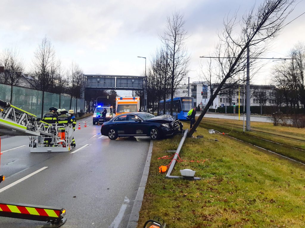 Der Unfall ereignete sich am frühen Sonntagmorgen in München: Aus bisher ungeklärten Gründen verlor ein 30-Jähriger die Kontrolle über seinen Mercedes. Er kam von der Straße ab und fuhr frontal gegen einen Laternenmast und einen Baum.