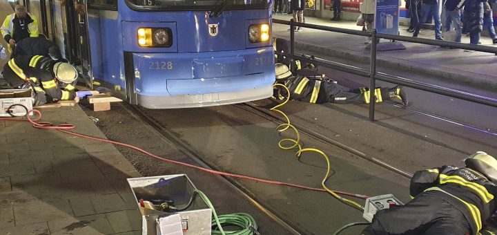 (München, 17.1.2022) Riesenglück für einen kleinen Hund: Der Vierbeiner hatte sich unter einer Trambahn eingeklemmt. Doch die Münchner Feuerwehr war zur Stelle.